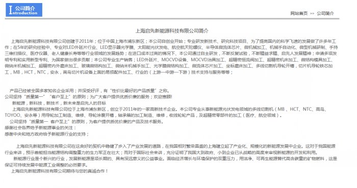 上海啟先新能源科技有限公司自創(chuàng)業(yè)開始;專業(yè)研發(fā)新技術(shù)、研究科技項目、為了提高國內(nèi)的科學(xué)飛速的發(fā)展做了許多年工作;在5年的研究經(jīng)驗中、專業(yè)對LED外延片行業(yè)、LED顯示器光學(xué)膜、太陽能光伏發(fā)電、航空航天陀螺儀、半導(dǎo)體微流體芯片、微機械加工、機械手自動化、微型機械研制、手持三維掃描儀、醫(yī)療儀器、老人健康長壽等等行業(yè)領(lǐng)域的發(fā)展趨勢;在進口成本過高的情況下、本公司通過自主研發(fā),不斷反復(fù)試驗,不斷精益求精、啟先人發(fā)展精神;申請多項發(fā)明專利和實用新型專利、為國家做出很多貢獻;本公司專業(yè)生產(chǎn)銷售;LED外延片、MOCVD設(shè)備、MOCVD治具加工、超精密恒流閥加工、超精密機床加工、微結(jié)構(gòu)模具加工、微納米機械加工、超精密內(nèi)外磨床加工、玻璃微結(jié)構(gòu)加工、微納米機械手加工、光學(xué)膜微結(jié)構(gòu)加工、微流體芯片加工、坐標(biāo)磨床加工、多線切割機導(dǎo)輪開槽,切片機導(dǎo)輪鐵芯加工,MB,HCT,NTC,安永,高鳥切片機設(shè)備上面的易損配件加工、行業(yè)的(上游—中游—下游)技術(shù)支持與服務(wù)等等;
