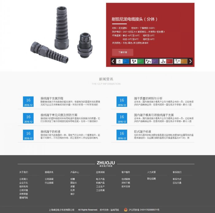 上海卓巨電子科技有限公司是一家生產(chǎn)各種規(guī)格系列的電線連接器(電纜接頭、線配器材)的專(zhuān)業(yè)公司,公司集科研、生產(chǎn)和銷(xiāo)售為一體的綜合性現(xiàn)代化企業(yè),公司一直貫徹質(zhì)量為中心的原則,并且嚴(yán)格按照ISO9001國(guó)際質(zhì)量管理體系的標(biāo)準(zhǔn)和管理模式進(jìn)行管理和生產(chǎn)。公司產(chǎn)品廣泛應(yīng)用于電子,機(jī)械,電氣成套等工業(yè)領(lǐng)域,產(chǎn)品遠(yuǎn)銷(xiāo)東南亞等發(fā)達(dá)國(guó)家,因產(chǎn)品其精湛的工藝和優(yōu)異的品質(zhì),已得到國(guó)內(nèi)各大集團(tuán)公司和國(guó)際客戶(hù)的公認(rèn)和好評(píng)。