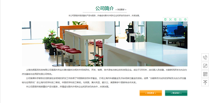 上海先輝醫(yī)藥科技有限公司是國內(nèi)專業(yè)從事光敏劑與相關(guān)中間體研究、開發(fā)、銷售、技術(shù)承包與轉(zhuǎn)讓的科技型企業(yè)。成立于2006年,由歸國人員創(chuàng)建。光敏新藥研發(fā)與光動(dòng)力療法基礎(chǔ)與應(yīng)用研究是公司特色。公司首席科學(xué)家在該領(lǐng)域的研發(fā)工作獲得了9項(xiàng)國家自然科學(xué)基金、15項(xiàng)上海市科委基金及20余項(xiàng)其它基金的資助。成果“光敏新藥與試劑的研制及光動(dòng)力療法基礎(chǔ)與應(yīng)用研究”獲上海市藥學(xué)科技二等獎(jiǎng)、中國藥學(xué)科技三等獎(jiǎng)。與英國、澳大利亞、愛爾蘭、美國等多個(gè)國家有合作關(guān)系。